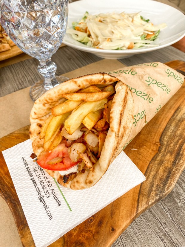 Did you know that gyros in Greece come with the french fries inside of them?! When I got my food, I couldn’t help but chuckle because I was not expecting that! They know what they’re doing though because this was the best gyro I have ever had in my life.