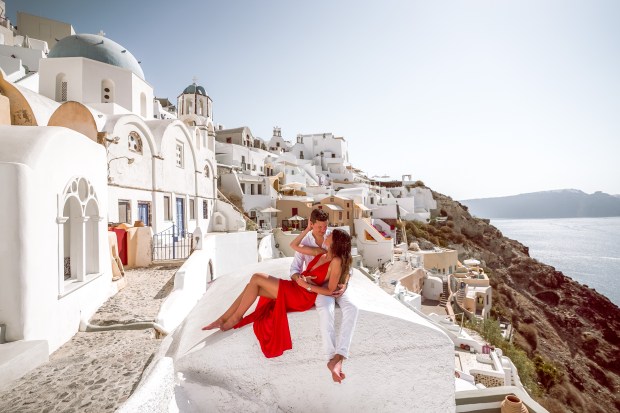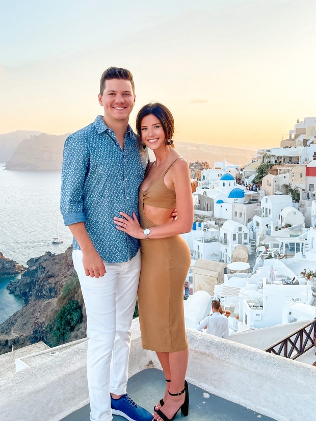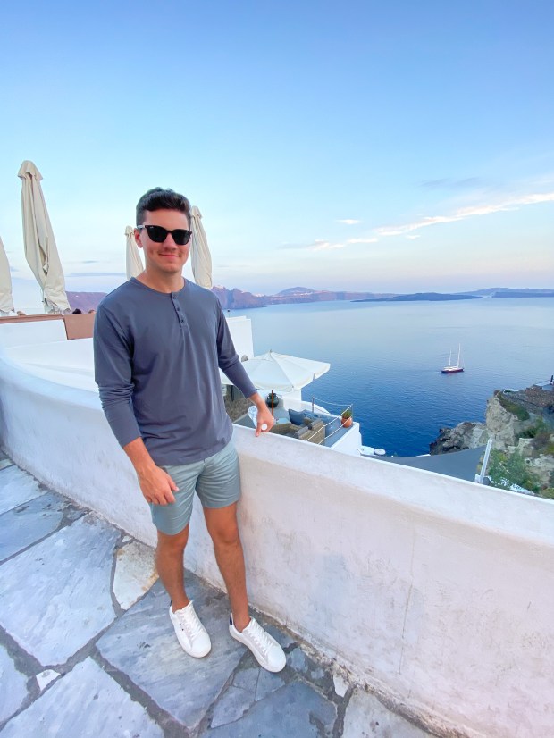 On our last full day in Santorini, we woke up early and did a professional couples photoshoot! This shoot actually comes with a crazy story.. Our original photographer got Covid while we were in town so they were unable to do our session. At first I thought we weren’t going to be able to book another photographer on such short notice, but I began to scour Instagram anyways. I came across Star Nina Photography and immediately loved their work. I sent them a message and they quickly replied stating that they only had one opening available and it was for 7am.. I instantly snagged it and we had the best time during our shoot. I highly recommend hiring a professional photographer to take portraits of you and your love if you can. This is my all time favorite photo from our trip and I am so thankful that we have it to look back on. Tip: I would actually suggest booking your time for early in the morning due to how hot it is outside. Also, the photographers take you to the best picture worthy spots and you get to skip all of the lines! It’s one thousand percent worth every penny.