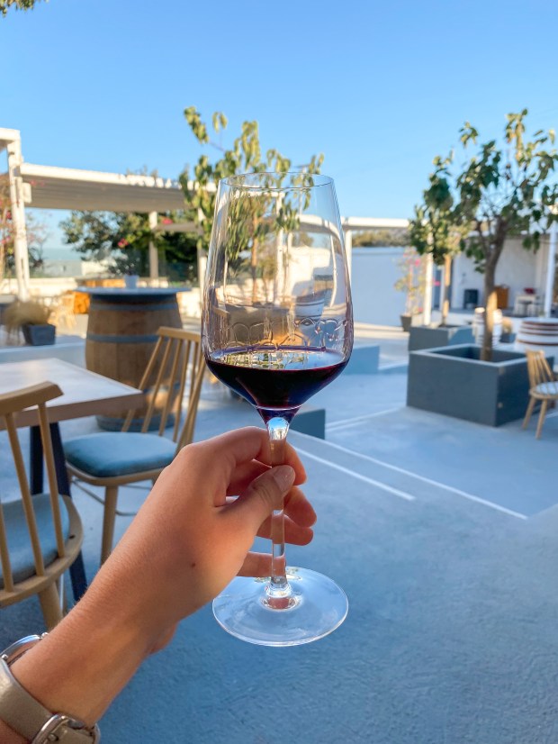 On our tour we stopped at three different wineries throughout Oia all the way over to Fira. At each location we got to tour the inside of the wineries, see the vineyards, taste about 6 different wines, and snack on delicious charcuterie boards. We got to learn so much about the Greek vineyards, how they make their wines, which wines to drink during a particular season, which foods to pair with specific wines, so on and so forth. It was the best wine tasting we’ve ever been on to say the least. We booked this wine tasting through Get your Guide as well and I would suggest booking your tasting before your trip! If you love drinking good wine, you will not be disappointed.