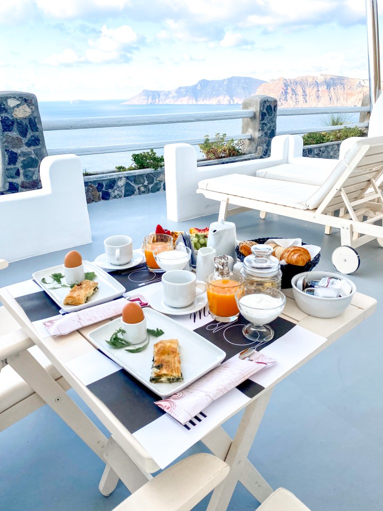 Each morning at both Thirea Suites and Ambitions Suites we enjoyed our breakfast on our private terrace overlooking the water. Breakfast is my favorite meal of the day and I wake up every morning looking forward to sipping on my cup of coffee. So, when I tell you that the Greeks know how to serve a good breakfast… I mean it. The fruit was always SO fresh, the pastries were warm and fluffy, the jams were real and not full of preservatives, and the yogurt was true Greek yogurt! Also, checkout how orange the OJ is.. true, freshly squeezed juice.