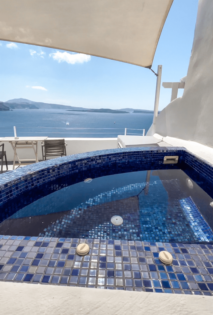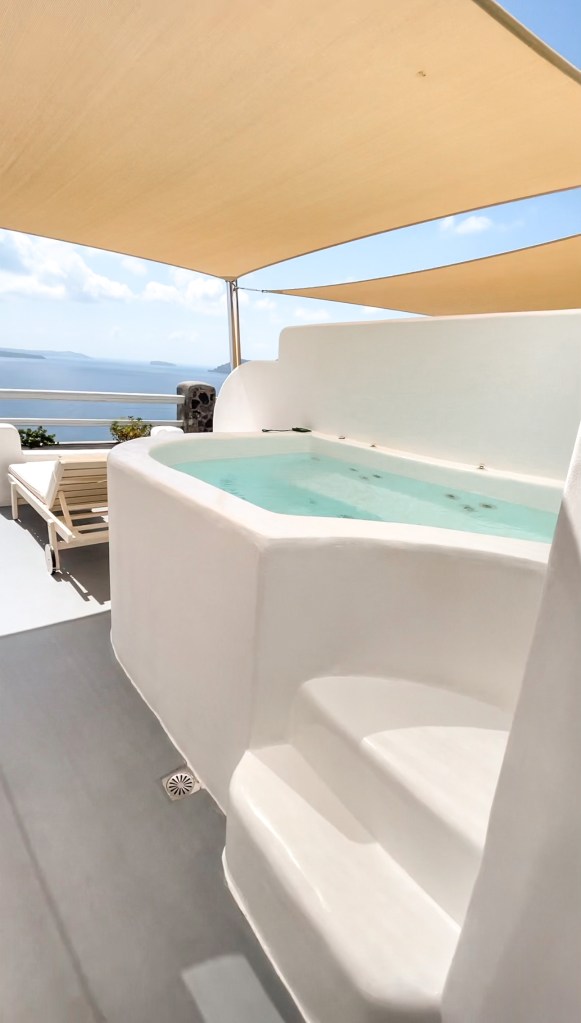 At Ambitions Suites we also had our own private hot tub and personal private breakfast table. After a long day of gallivanting throughout the island we would come back to our suite, pour ourselves a glass of bubbly and just relax in the hot tub together. The stillness of the night was so peaceful and because it was September, the evening weather was heavenly. No matter where you choose to stay when you visit Greece, make sure a private hot tub is included. We looked forward to using ours every single night.